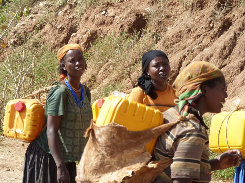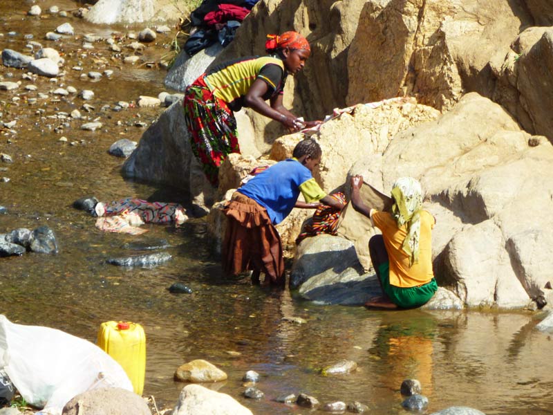 An den sehr wenigen kleinen Flüssen, denen wir unterwegs begegneten, herrschte reger Betrieb. Die Frauen badeten, wuschen die Wäsche oder füllten die gelben Kanister mit Wasser, um diese anschließend kilometerweit auf dem Rücken zu transportieren. Einige Männer wuschen auch ihre Tuktuks im gleichen Fluss.