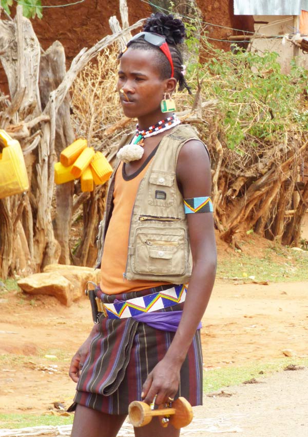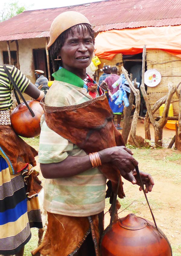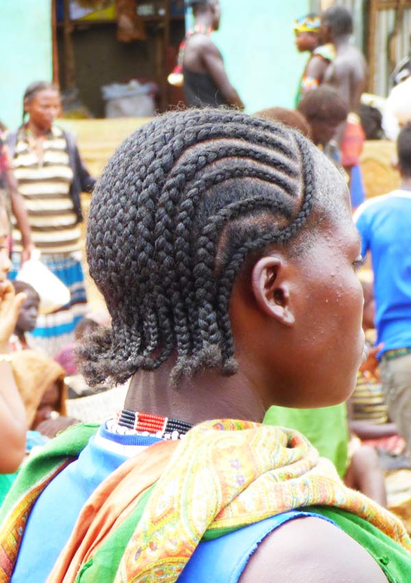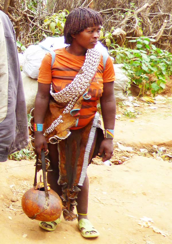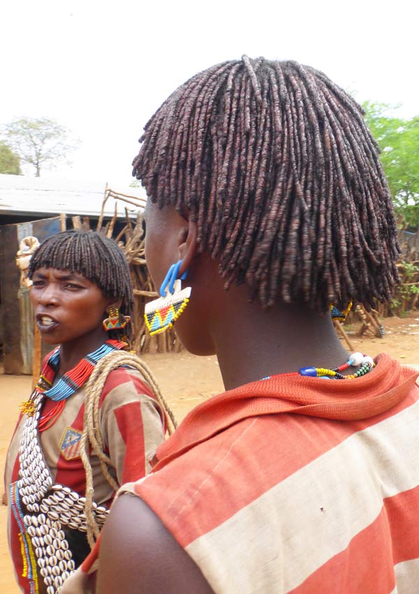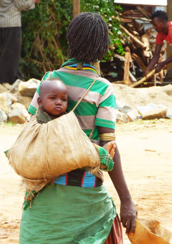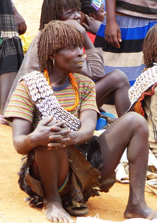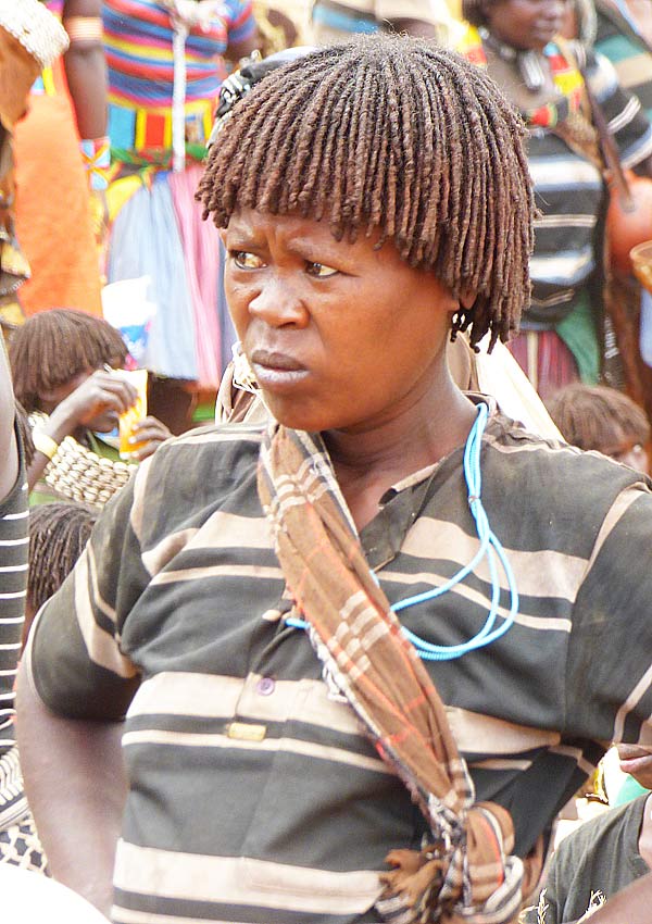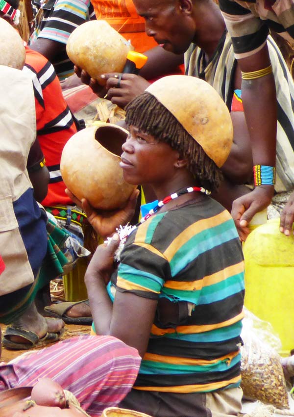 Hier handelten die einzelnen Volksgruppen, die von ihnen hergestellten Waren, Wir sahen hauptsächlich Arbore mit den halbierten Kalebassen auf dem Kopf und Hamer mit den kunstvoll gedrehten Zöpfchen aber auch andere Volksgruppen mit einander feilschen. Die eine Stunde Marktbesuch war eine sehr interessante Abwechslung und mein 60fach-Zoom hat sich dafür bestens bewährt.
