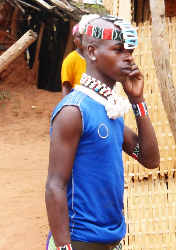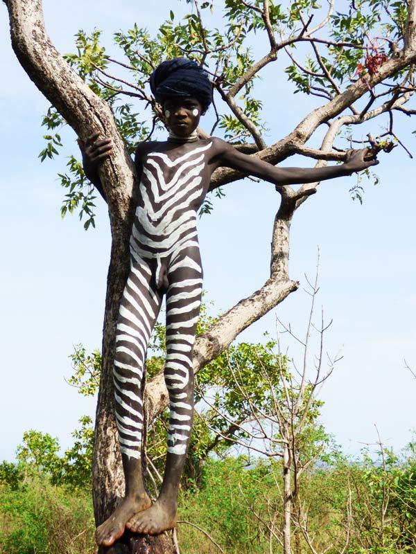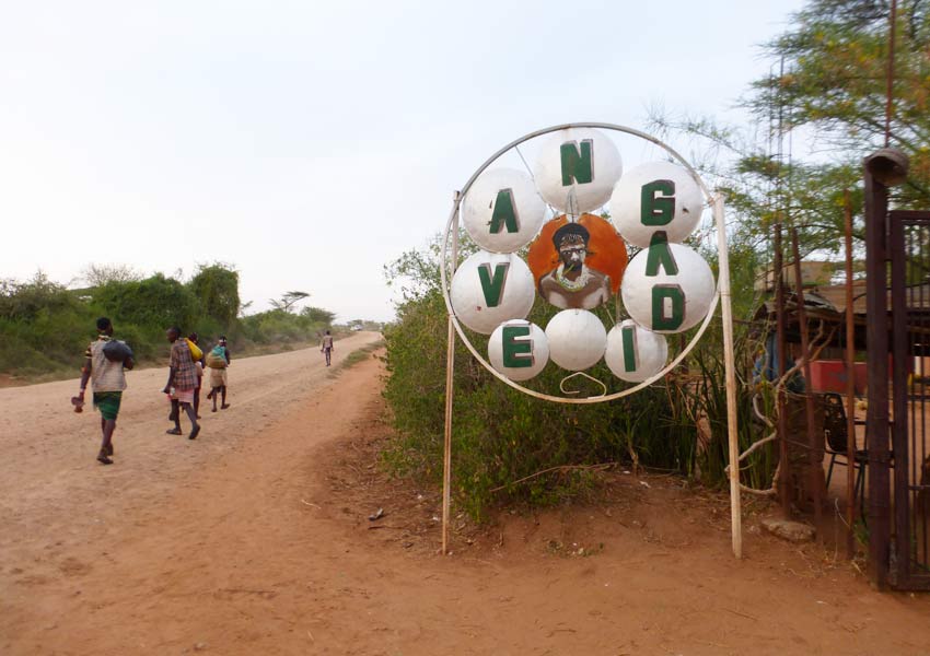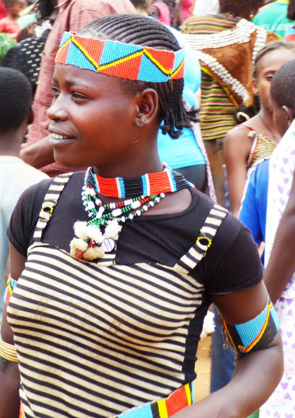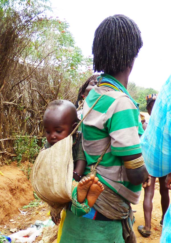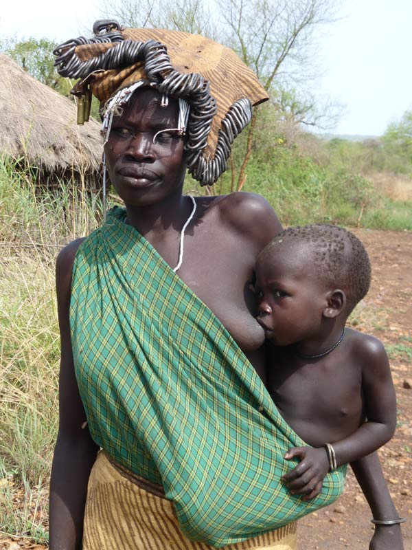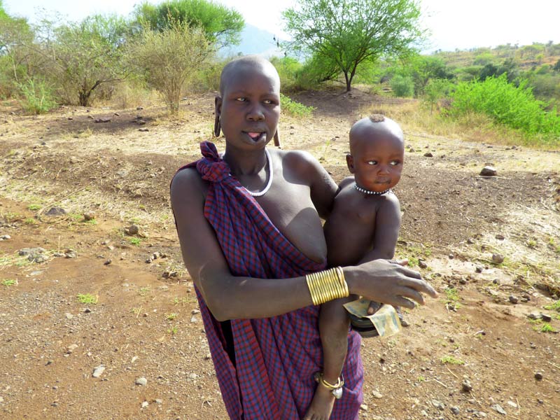 Um 9 Uhr erreichten wir den Eingang des Nationalparks, wo uns eine Frau mit einem kleinen Jungen auf dem Arm begegnete. Ihre Unterlippe war geschlitzt und hing etwas herab, da sie im Moment keinen Tonteller darin trug.