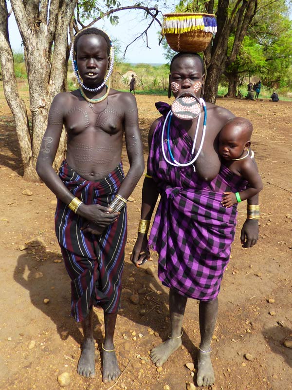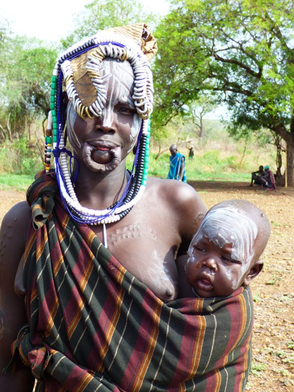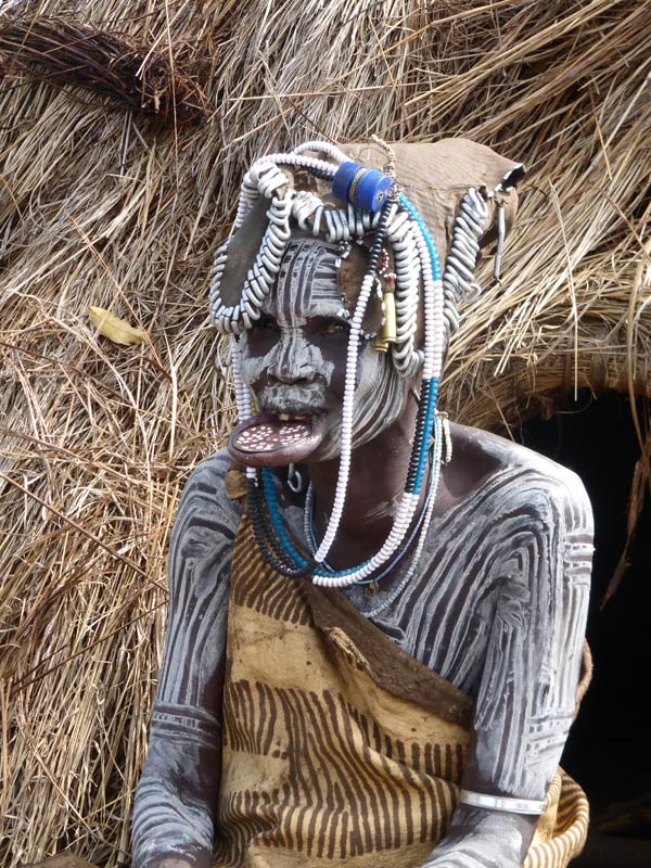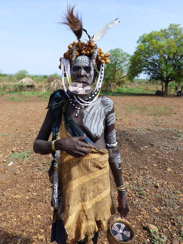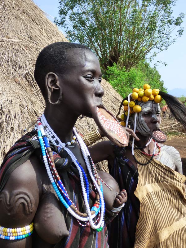 Die Mursifrauen tragen Lippenteller, dazu wird die Unterlippe bei jungen Mädchen aufgeschnitten und die vorderen Schneidezähne ausgeschlagen. Immer größer werdende, selbst hergestellte Tonteller werden danach eingesetzt, damit sich die Unterlippe immer mehr dehnt.