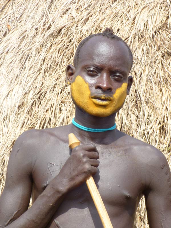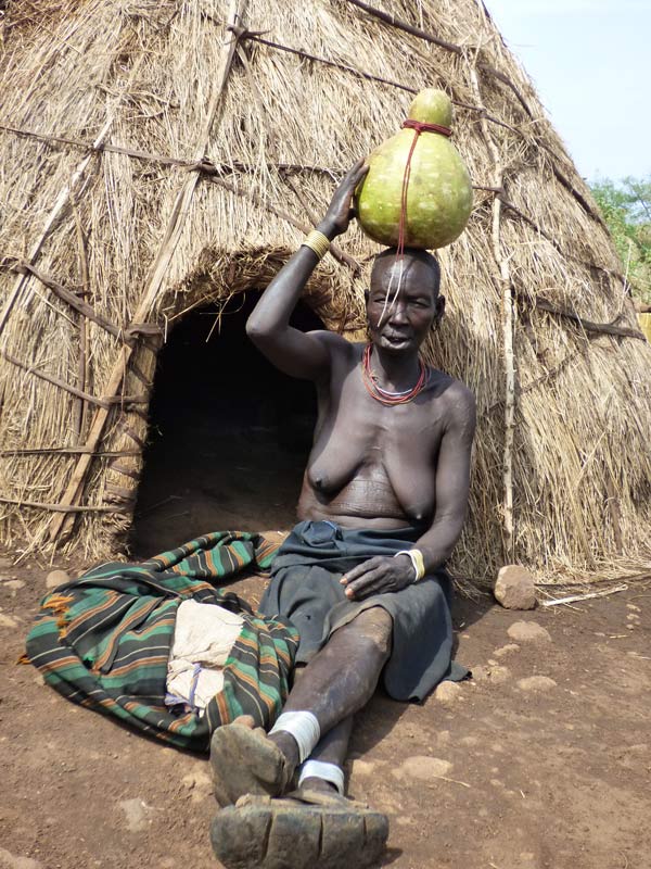 Auch hier hatten wir vorher einen ortskundigen Guide mitgenommen, der uns durch das Dorf führte und etwas über Tradition und Lebensweise der Mursi erklärte. Monika und ich machten abseits hinter den Hütten einige Bilder von uns besonders fotogenen Bewohnern dieses Dorfes. Hier kostete ein Foto 5 Birr (etwa 20 Cent) und wir waren froh, im Norden genug 5 Birr-Scheine besorgt zu haben.