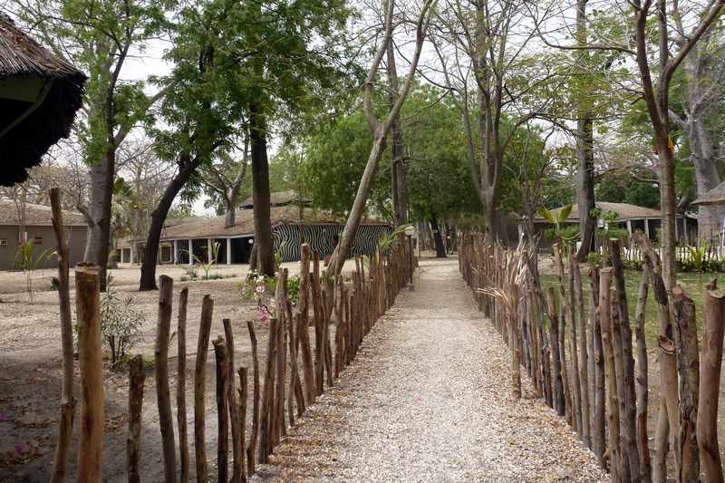 Nach diesem unterhaltsamen Zwischenstopp fuhren wir ca. 16 km weiter nach Tabakouta, einem kleinen Ort, wo wir im Hotel Les Paletuviers die nächste Nacht verbringen würden. Uns erwartete eine in einem sehr schön angelegten Garten gelegene Anlage mit Bungalows, einem Restaurant und einem kleinen Pool. Einige Treppen führten zu einem Fluss, wo Bootsfahrten angeboten werden.