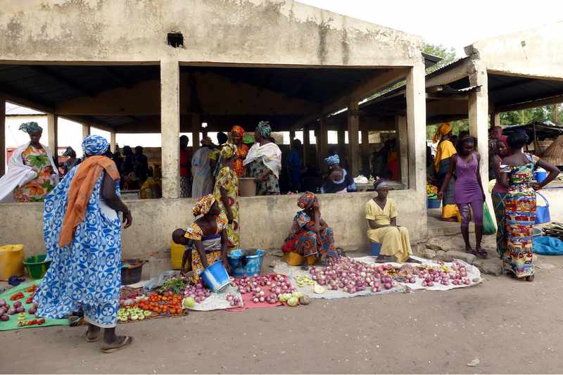 Am nächsten Morgen besuchten wir nach dem Frühstück mit unserem Guide das Dorf Tabakouta. Hier bekamen wir interessante Einblicke in das Leben der Bevölkerung und konnten dem Treiben auf dem kleinen Markt zusehen und einige Souvenirs kaufen. Für die Jungen im Dorf kauften wir einen Fußball und die mitgebrachten Süßigkeiten, Luftballons und Kugelschreiber fanden reißenden Absatz.