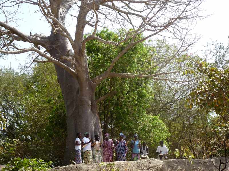 Unterwegs besuchten wir einen alten Medizinmann in einer Hütte mitten im Wald. In einer „Palmweinfabrik“ erklärte man uns dessen Herstellung und zeigte das Erklimmen einer Palme nur mit bloßen Füßen und einer Schlinge um die Hände.