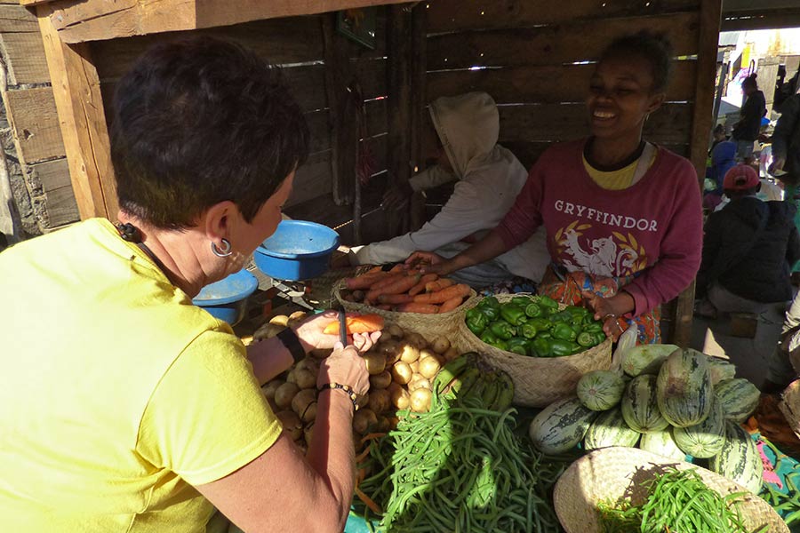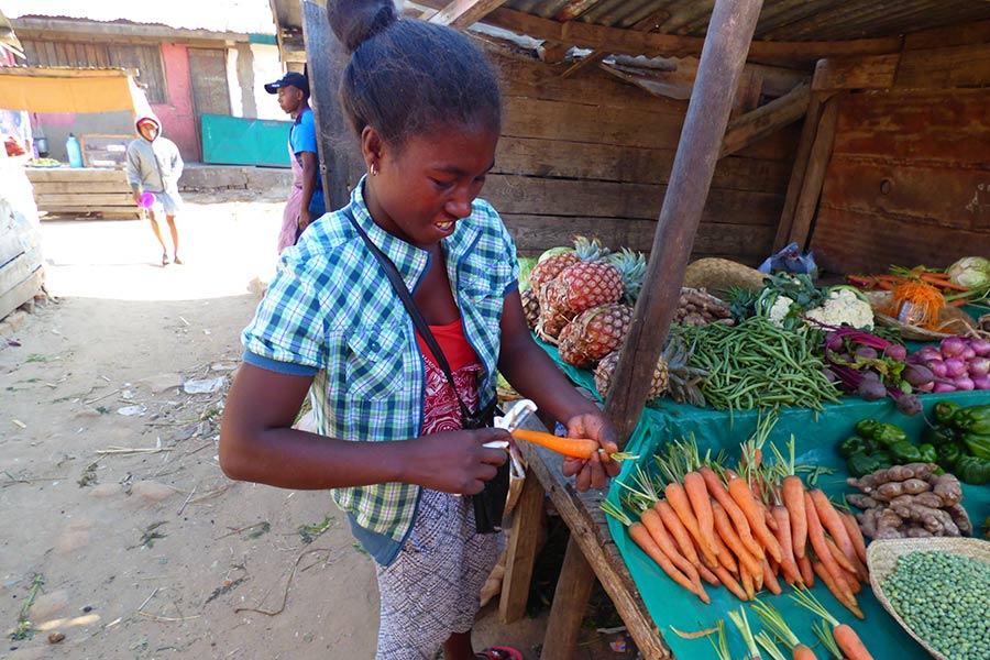 Auf einem weiteren Markt kaufte Monika eine riesige Papaya für 3.000 Ariary (75 Cent).