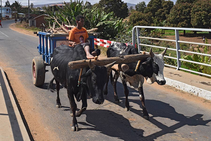 Wir sahen die für diese Gegend typischen zweistöckigen Häuser und teilweise interessante Kirchen. Mädchen mit Gießkannen Marke „Eigenbau“ und immer wieder Zebuherden und -karren. Die Straße führte oft schnurgerade durch flache, öde Landschaft, die nur ab und zu durch Reisfelder aufgelockert wurde.