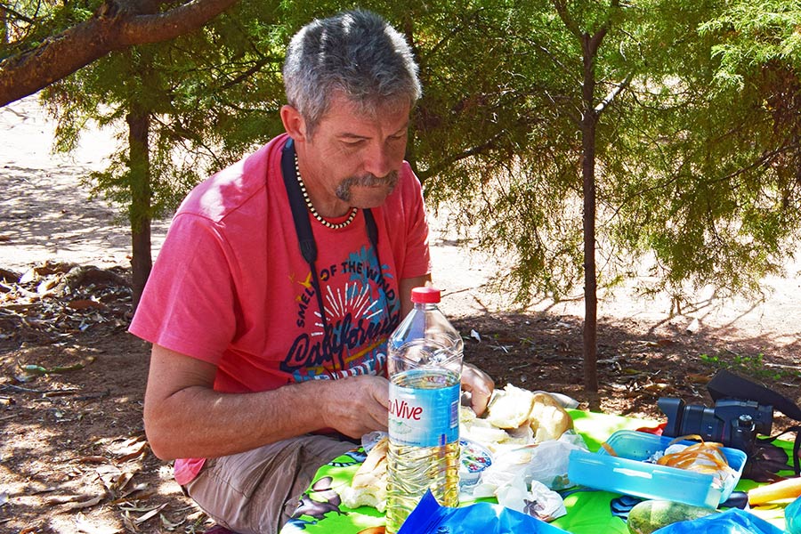 12.30 Uhr machten wir ein Picknick, wo wir uns das erste Chamäleon begegnete.