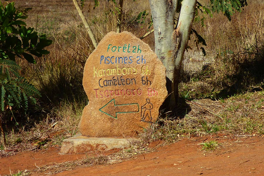 Unser Guide zeigte uns, wie von den Einheimischen aus einer Sisalpflanze ein Seil hergestellt wird. Danach bekamen wir einige Echsen zu Gesicht, unter anderem auch eine dreiäugige. In einer Grabkammer in einer Felsnische lagen die Gebeine von zwei angeblichen Zeburäubern, die hier vor vielen Jahren hingerichtet und bestattet wurden.