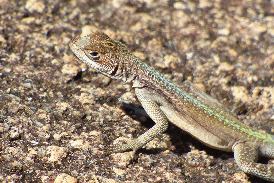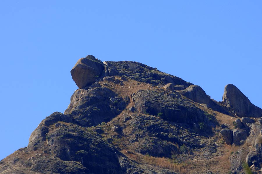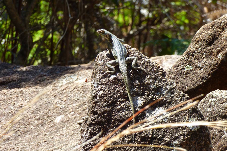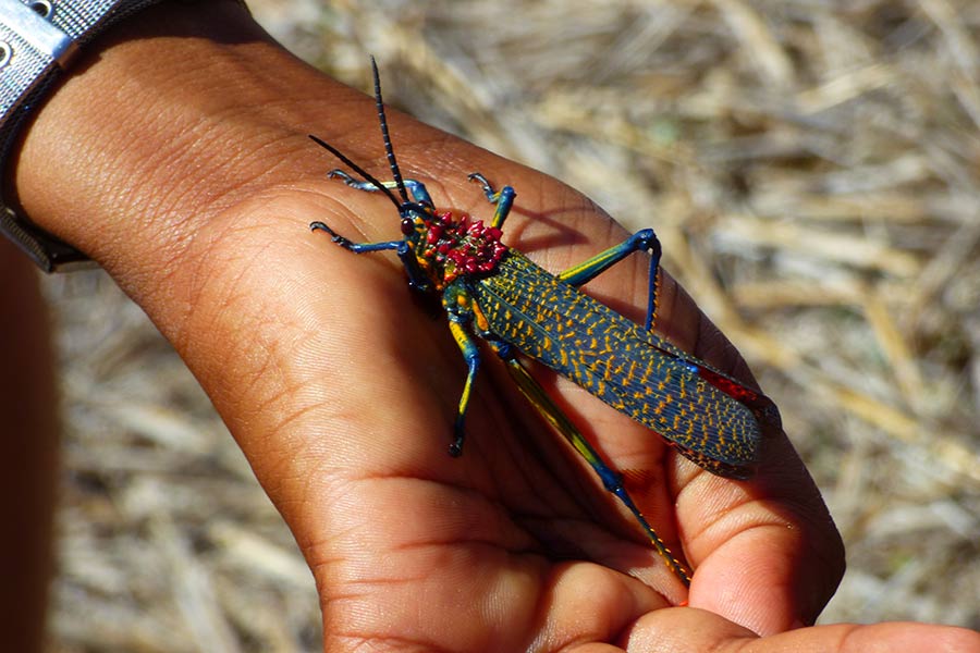 Wir sahen das auf dem gleichnamigen Berg sitzende steinerne Chamäleon, bestaunten eine große wunderschön gefärbte Heuschrecke und ein Loch im Boden, um das die Schuppen einer Schlangenhaut lagen.