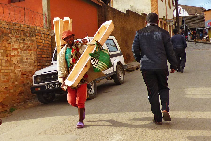 Kurz vor 12 Uhr erreichten wir die Papiermanufaktur in Ambalavao. Nach der Besichtigung aßen wir im angeschlossenen Restaurant zu Mittag. Wir entschieden uns für chinesische Suppe, Nudeln mit Gemüse und zwei Cola – das Ganze für umgerechnet 10 Euro.