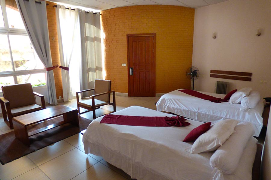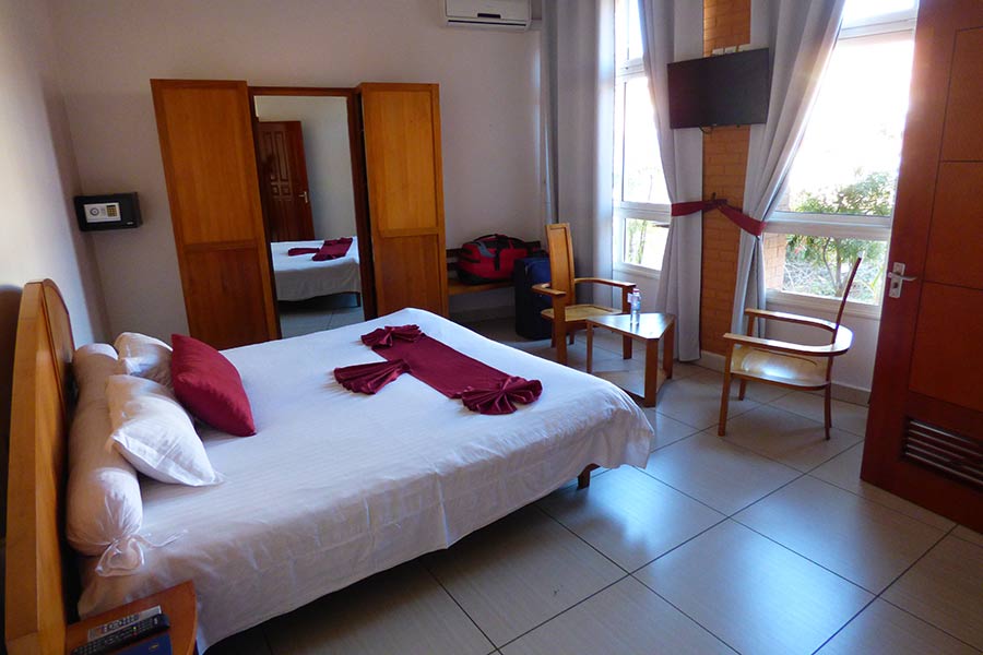 15.30 Uhr erreichten wir das Tagungshotel „Zomatel“ in Fianarantsoa und bekamen ein Appartement mit zwei riesigen Zimmern und einem schönen Bad.