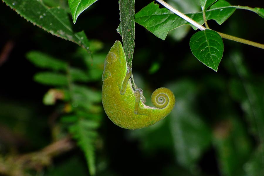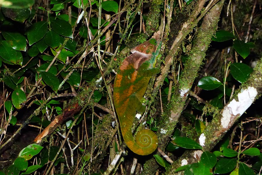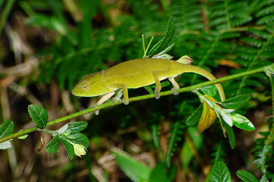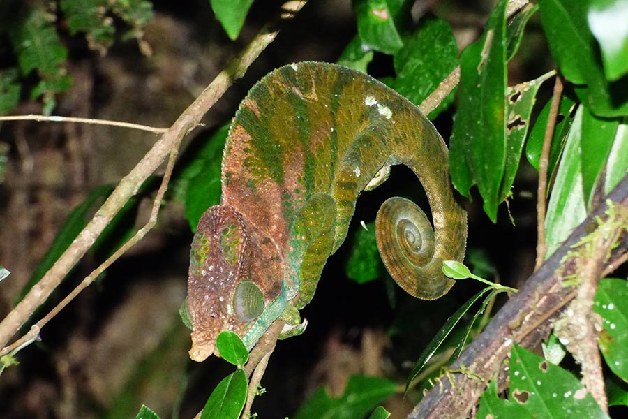 Um 17.30 Uhr fuhren wir zur Nachtpirsch. Uns erwartete der gleiche Guide wie am Vormittag und auf den Bäumen am Straßenrand konnten wir im Schein der Taschenlampen einen Mausmaki und etliche kleinere Chamäleons entdecken.