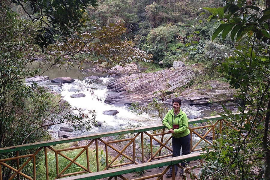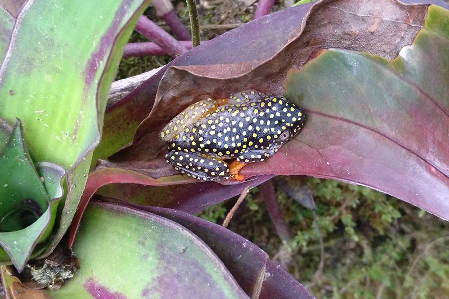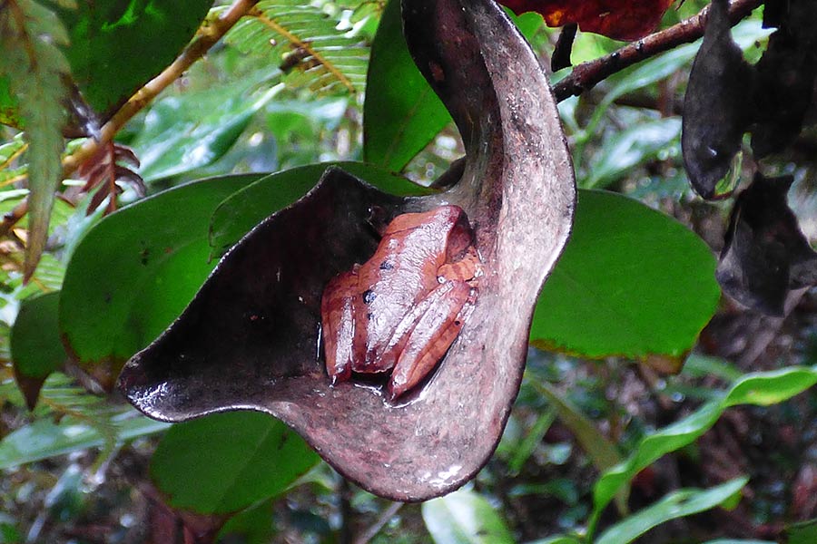 Kurz vor 14 Uhr waren wir im „Hotel CentrEst“ in Ranomafana und bekamen das Twinzimmer L, das genug Platz bot und ein großes Badezimmer hatte. Monika machte einige Erkundungen im Garten. Dort zeigte ihr ein Junge einen sehr schönen Frosch. Außerdem konnte man schöne Pflanzen und auch einige große Spinnen finden.