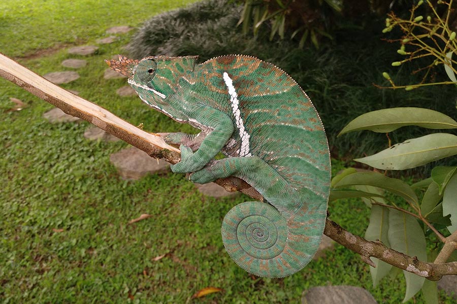 Zurück im Hotel fragten wir einige Jungen, ob es hier auch Chamäleons gibt, denn da diese zur Zeit meist noch Winterschlaf hielten, sah man sie sehr selten in freier Natur.