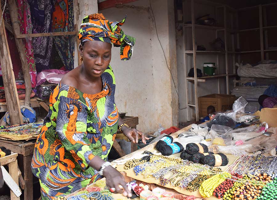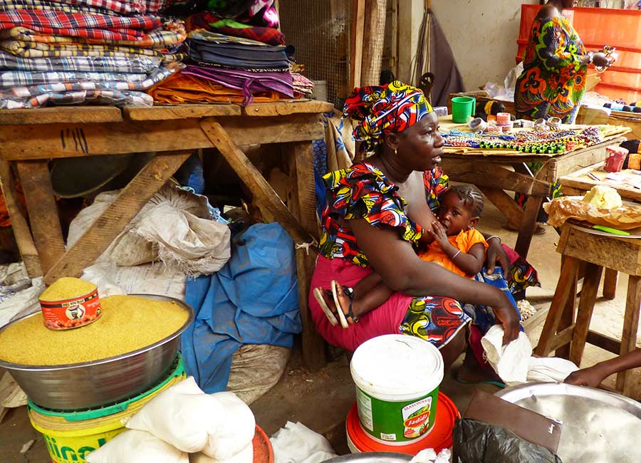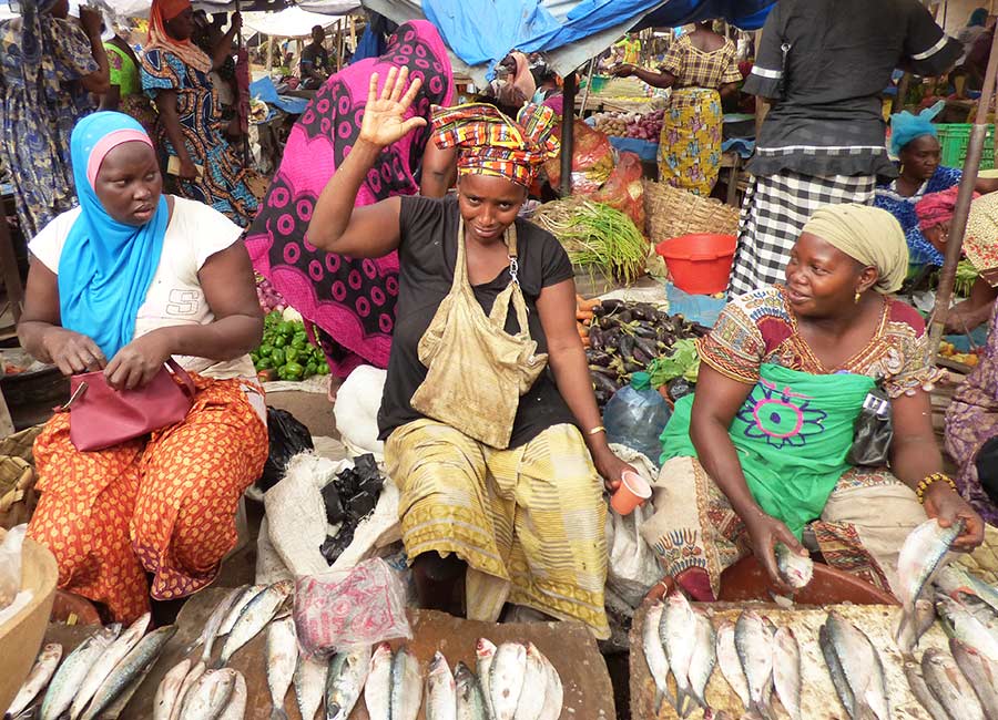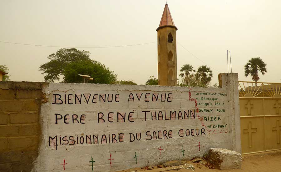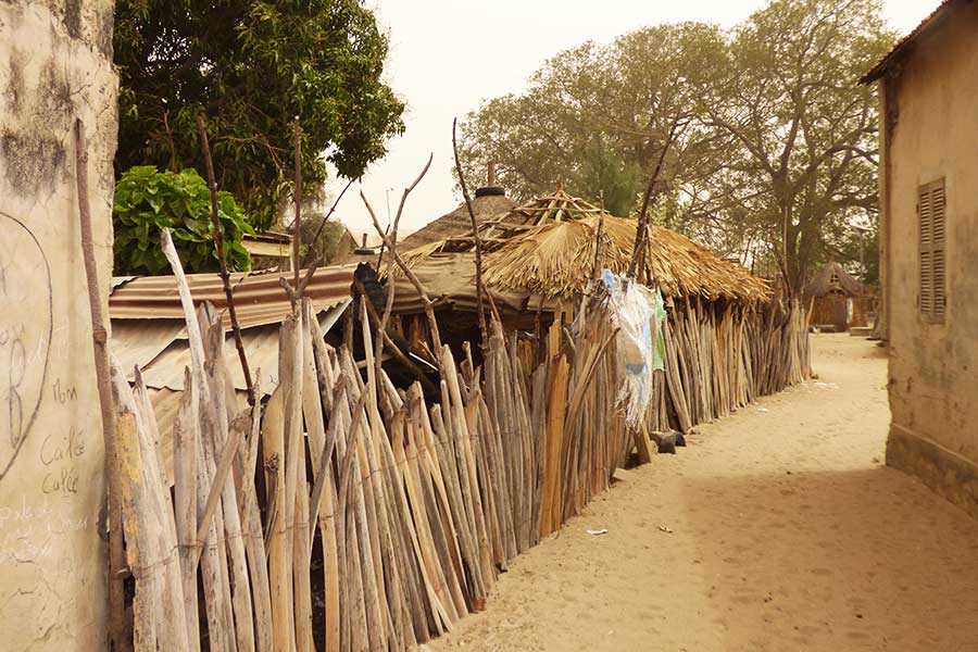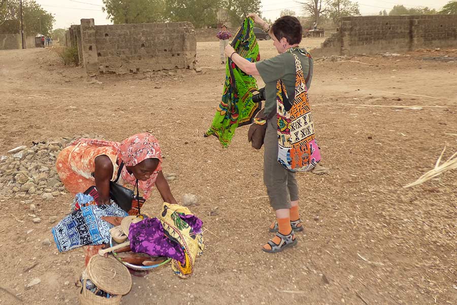 Nach 30 Minuten waren wir am Ziel und Mamadou zeigte uns stolz das Geburtshaus von Léopold Sédar Senghor, dem von 1960 bis 1980 ersten Präsidenten Senegals und mit dem er um einige Ecken verwandt war. Von einer Händlerin kaufte sich Monika zum Abschluss für 5.000 CFA ein schönes Tuch bevor wir uns wieder auf die Pferdekarren schwangen und Rückfahrt antraten.