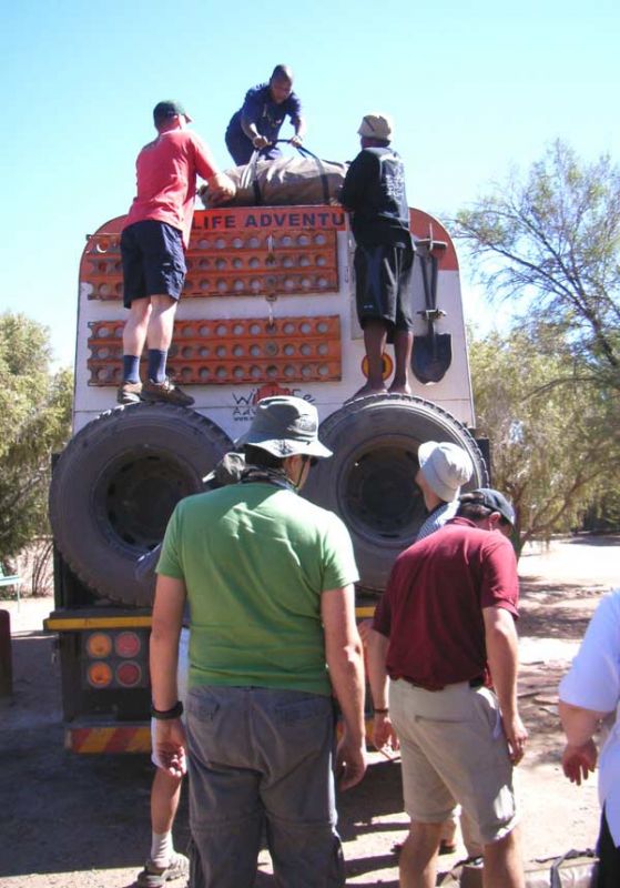 Der Freitagmorgen begann 6.45 Uhr mit Waschen und Zeltabbau, bevor wir uns 7.30 Uhr für die Tagestour stärkten. Nach dem Frühstück wurde eine Liste mit Namen, Nationalität, Pass- und Heimat-Telefonnummer von der Heimat für den Grenzübertritt ausgefüllt und 8.30 Uhr verließen wir Fiddlers Creek.