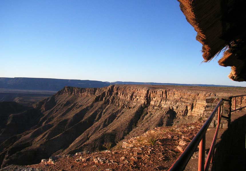 Gegen 15.00 Uhr erreichten wir Hobas Camp, wo wir unsere Zelte aufschlugen, um danach den Fish River Canyon zu besuchen, wo wir bis zum Sonnenuntergang bleiben wollten. Er ist mit einer Länge von 161 Kilometern und einer Tiefe von 550 Metern nach dem Grand Canyon der zweitgrößte der Welt und Teil eines Naturschutzparks. Von Hobas aus fährt man noch 10 Kilometer bis zum Canyonrand, um den wirklich beeindruckenden Ausblick zu genießen. Der Fish River ist mit 650 Kilometern der längste Fluss Namibias.