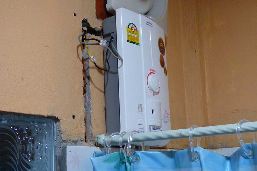 Im Zimmer bemerkte ich erst heute, dass der Anschluss des Elektroboilers in der Dusche etwas lebensgefährlich ausgeführt war.