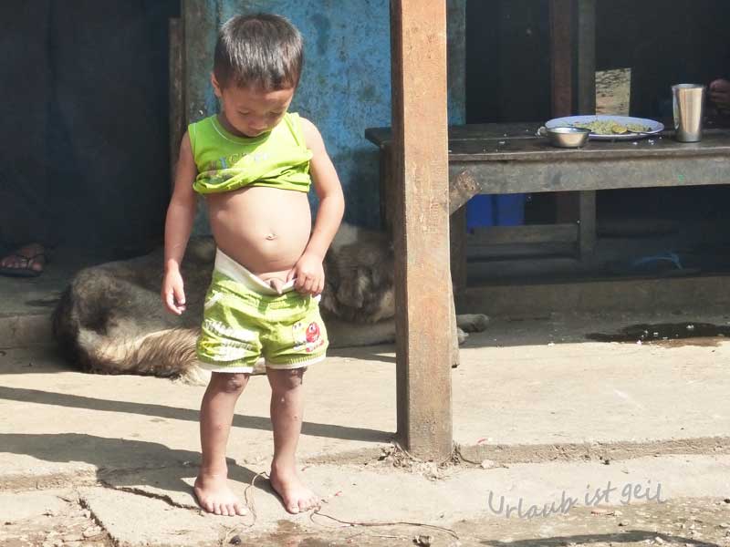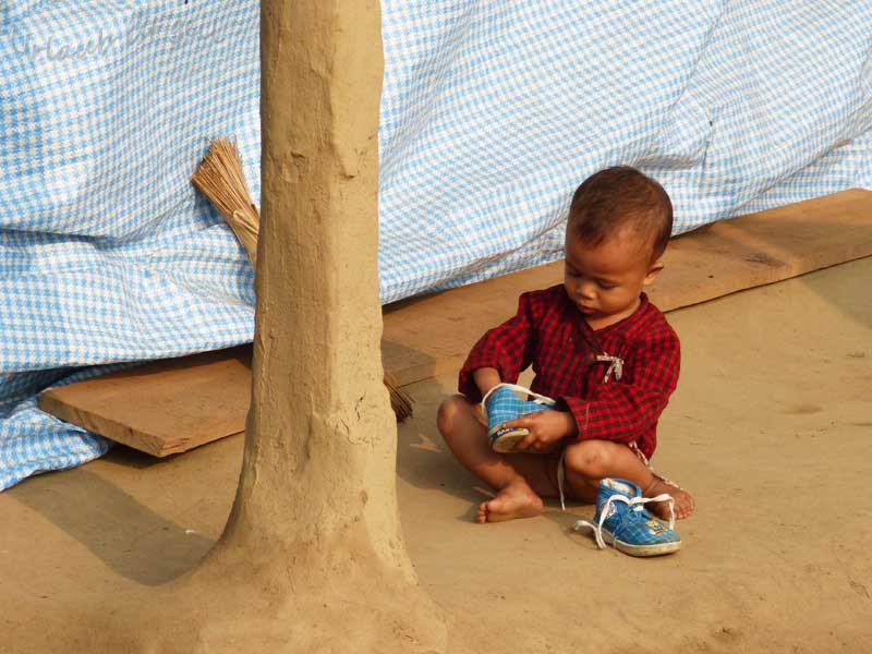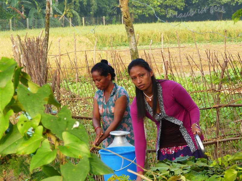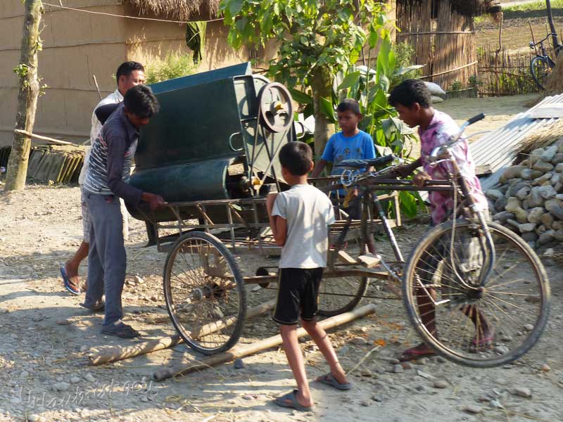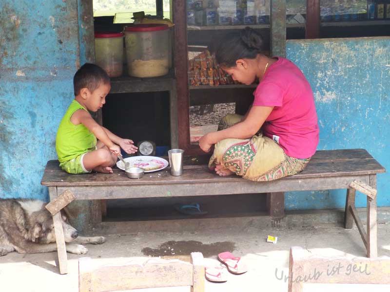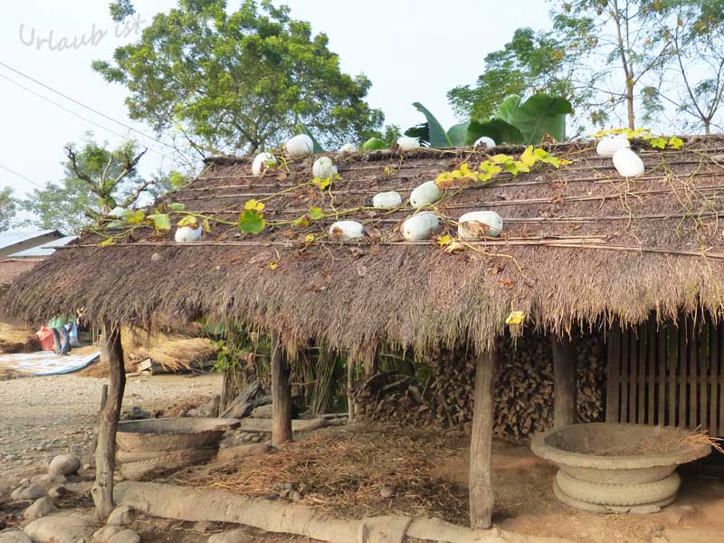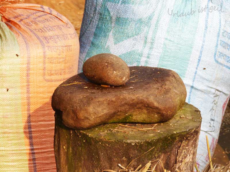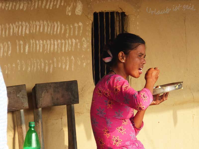 Unser Resort befand etwas abseits des kleinen Ortes Sauraha, der durch den Fluss Rapti vom Nationalpark getrennt ist. Nach wenigen Gehminuten erreicht man ein Dorf, in denen die Tharus leben. Die Menschen versorgen sich weitgehend mit allen Dingen selbst und bewohnen traditionelle Lehmhäuser ohne Fenster. Um Insekten fernzuhalten gibt es nur mit Strohhalmen verschlossene Luftöffnungen Damit das ehemalige dörfliche Leben erhalten bleibt (und natürlich den Touristen zu zeigen), bekommen die Bewohner Unterstützung vom Staat. Trotz des kleinen touristischen Touchs war es sehr interessant und identisch.
