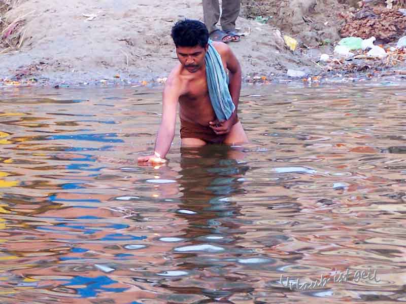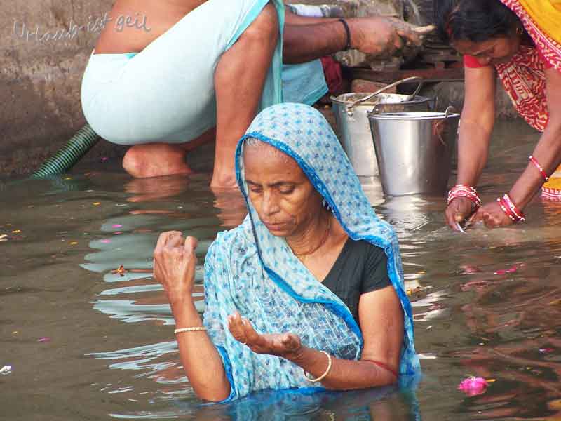 Abends besuchten wir am Ufer des Ganges die allabendliche Gebetszeremonien der Gläubigen. Durch die tausenden Pilger ist die Stadt total überfordert, so dass man jeden Schritt mit Bedacht gehen muss.