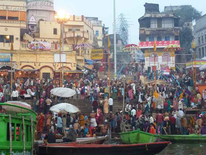 Streng gläubige Hindus möchten in Varanasi im Ganges baden sowie einmal dort sterben und verbrannt zu werden, um aus dem ständigen Kreislauf der Wiedergeburt auszubrechen.