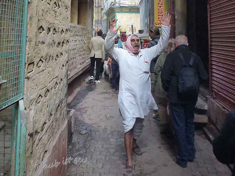 Varanasi verfügt auch über 200 wichtige hinduistische, jainistische und buddhistische Tempel. Zu den meisten haben Nicht-Hindus allerdings keinen Zutritt. So konnten wir nur die kilometerlange Schlange der Pilger zu Gesicht bekommen, welche stundenlang auf den Zugang zum Haupttempel warteten.