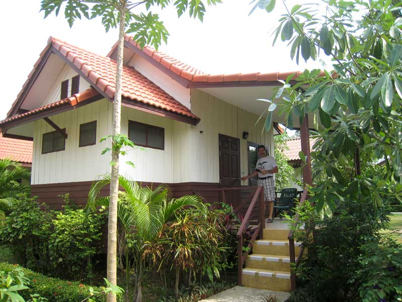 Wir bewohnten einen schönen an Hang gelegenen Bungalow und es waren nur einige Treppenstufen bis zum herrlichen einsamen Hotelstrand, der zwischen den großen Felsen eingebettet war.