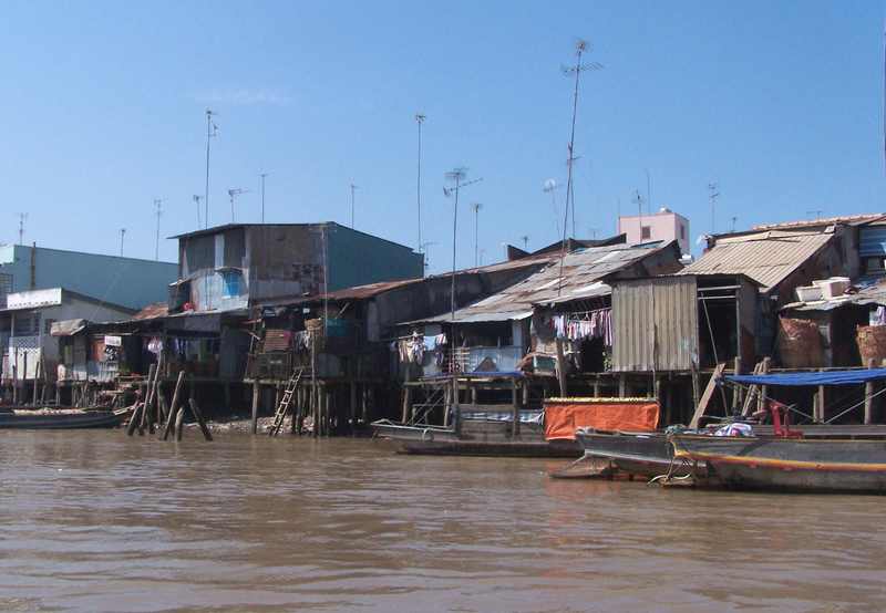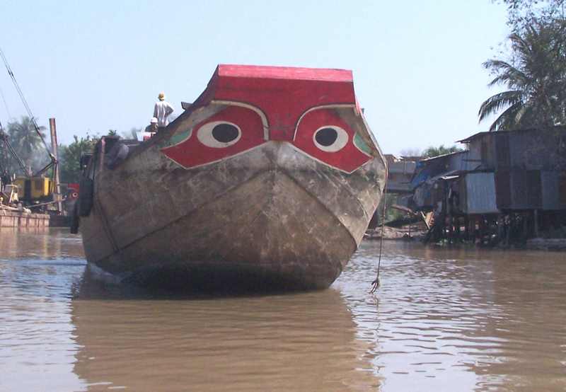 An den Ufern fielen uns die ärmlichen Behausungen auf, welche oft nur aus einigen Brettern oder Plastikplanen bestanden. Alle Boote hatten am Bug zwei Drachenaugen, die vor bösen Geistern schützen sollten.