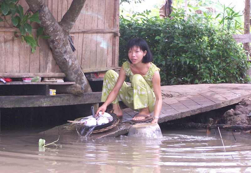 Binh meinte, dass wir noch bis morgen Mittag bleiben sollten, da man dann nach dem morgendlichen Besuch zweier schwimmender Märkte auf dem Fluss am Village vorbeifahre und uns absetzen könne – ein Vorschlag, der uns ausgezeichnet gefiel.