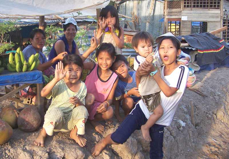 Wir wanderten ungefähr eineinhalb Kilometer bis zu eine Pagode, wo wir auf viele spielende Kinder trafen und so noch einige unserer Geschenke verteilen konnten.