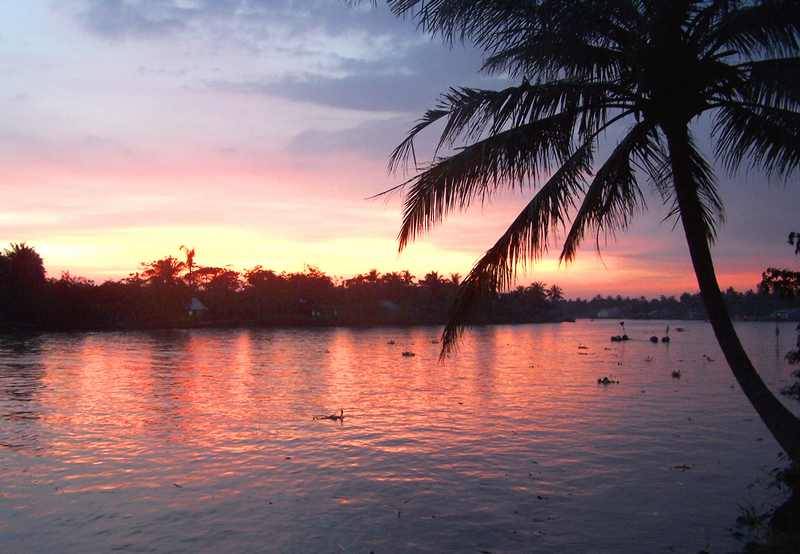 Auf dem Rückweg gab die gerade über dem Mekong untergehende Sonne einen wunderbaren Anblick und Gelegenheit zum Fotografieren.