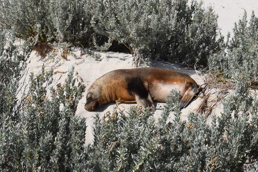 Wir wählten die Südroute, da Monika den Sealbay besuchen wollte. In der sehr schönen Wilsonbay machten wir einen Strandspaziergang. Eigentlich wollten wir noch Tanken fahren, aber die einzige Tankstelle auf der Strecke hatte leider geschlossen. Um 13.45 Uhr erreichten wir unsere Unterkunft, das Western KI CP & Wildlife Resort. Dort bezogen wir nach kurzem Check in unseren sehr schönen Bungalow.