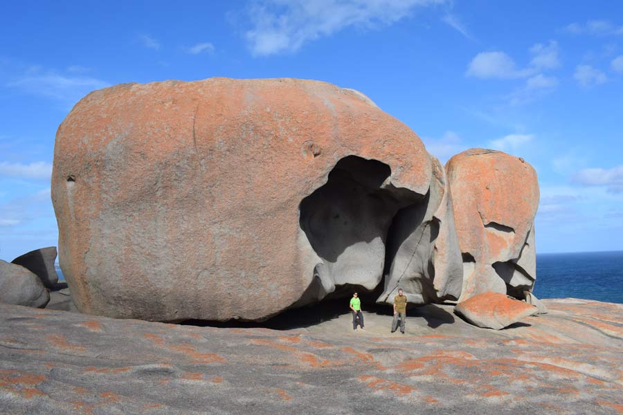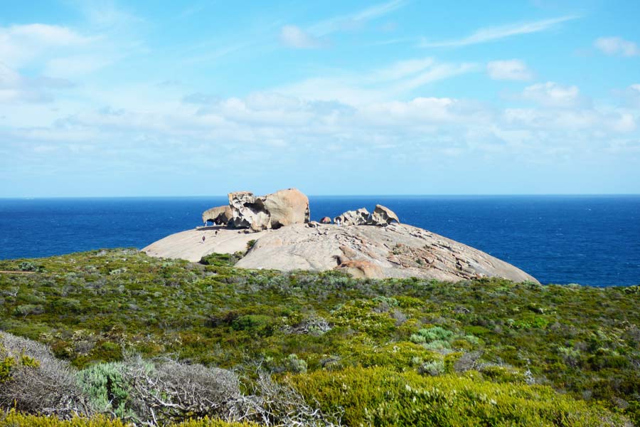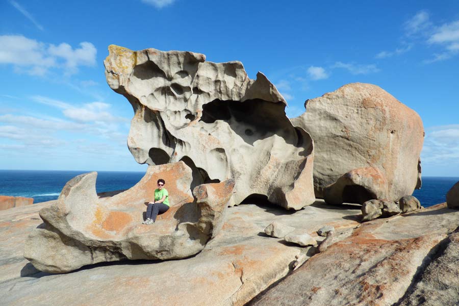 Absoluter Höhepunkt waren für uns aber die Remarkable Rocks. Diese wirklich bemerkenswerten riesigen Granitfelsen befinden sich auf einer Lavaplattform 200 Meter über dem Meer. Durch Millionen von Jahren wurden sie vom Wetter zu bizarren Gebilden geformt und sind nun ein Eldorado für Touristen und Fotografen. Die sehr fotogenen Steine hielten uns eine Dreiviertelstunde in ihrem Bann.