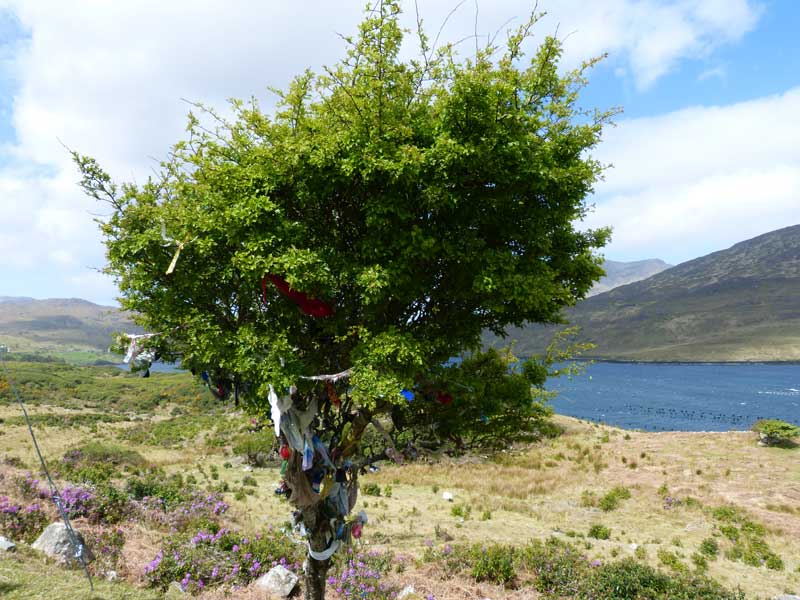 Unterwegs zeigte uns Katja einen Fairy Tree – einen mit bunten Bändern geschmückten Feenbaum, der Wünsche erfüllen hilft. Die Iren sind noch sehr mit ihren Legenden und Märchen verbunden, deshalb wird zumindest in den ländlichen Gebieten auch kein altes Haus abgerissen, da darin die Feen und Trolle wohnen.