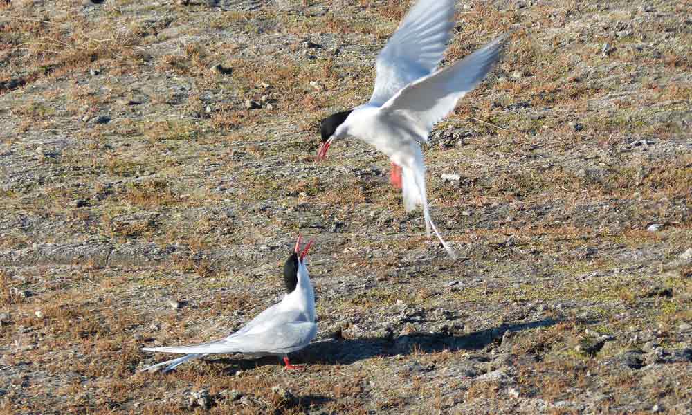An den Wegrändern brüteten wieder die angriffslustigen Polarmöven und man wurde darauf hingewiesen, sich mit roten Stäben zu bewaffnen, um die Angriffe abzuwehren. Die Sonne strahlte vom Himmel und ging diesen Tag nicht unter, so konnten wir die letzten Stunden dieser herrlichen Natur bis Mitternacht genießen. Den letzten Drink auf dem Pooldeck, dann brachte uns ein Bus zum Flughafen, wo die neuen Passagiere ankamen, die mit der MS Hamburg weiterfuhren.