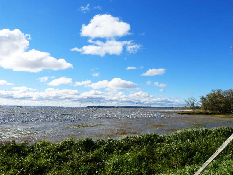Zuerst fuhren wir zum nationalen Wildreservat von Cap Tourmente, da wir gelesen hatten. dass sich dort im Herbst die Schneegänse auf ihrem Flug nach Süden sammeln. Sie kehren jedes Jahr an den gleichen Plätzen ein, um für ihren Weiterzug an die Ostküste Nordamerikas Kräfte zu tanken.