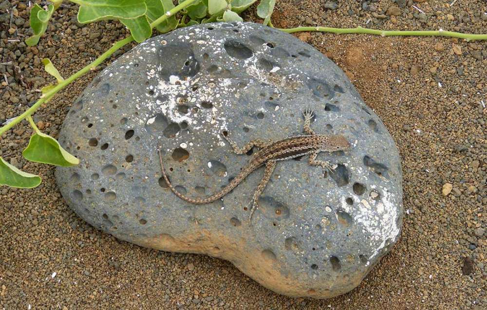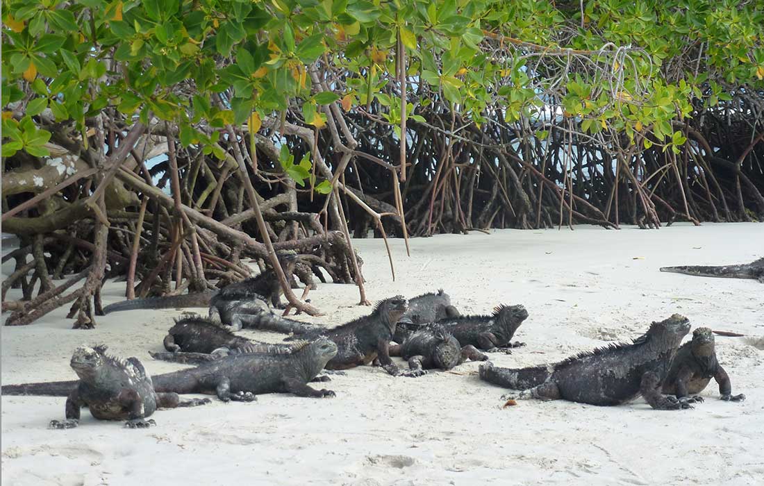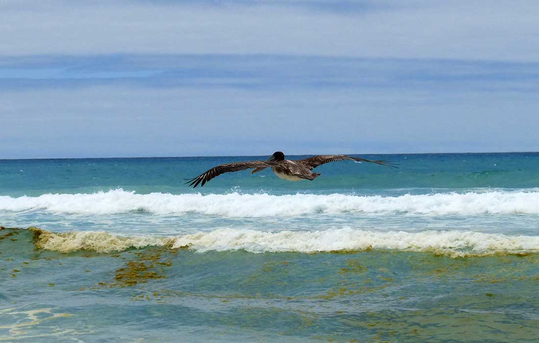 Uns begegneten auf den Weg fliegende Pelikane und eine kleine Kolonie von pechschwarzen Meeresechsen.