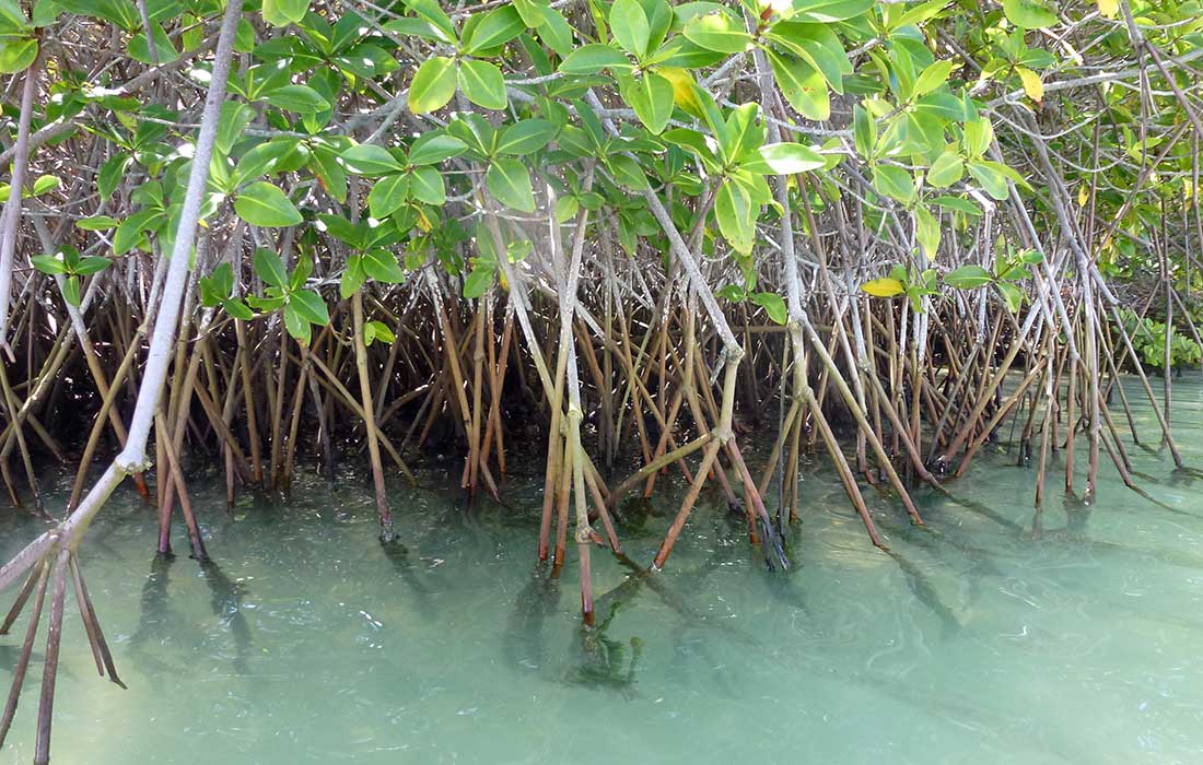 Der Playa Mansa war wirklich sehr schön gelegen. Hier hatten sich auch schon einige Badelustige einen schattigen Platz gesucht. Wir breiteten unsere Handtücher im Schatten von Mangroven aus und badeten anschließend in dem warmen Wasser. Im flachen Wasser konnten wir kleine Haie beobachten. Ein Pelikan hatte es sich in der Krone einer Mangrove bequem gemacht und ließ sich nicht stören und einige zutrauliche Finken wollten unbedingt meine Waffel mit mir teilen.