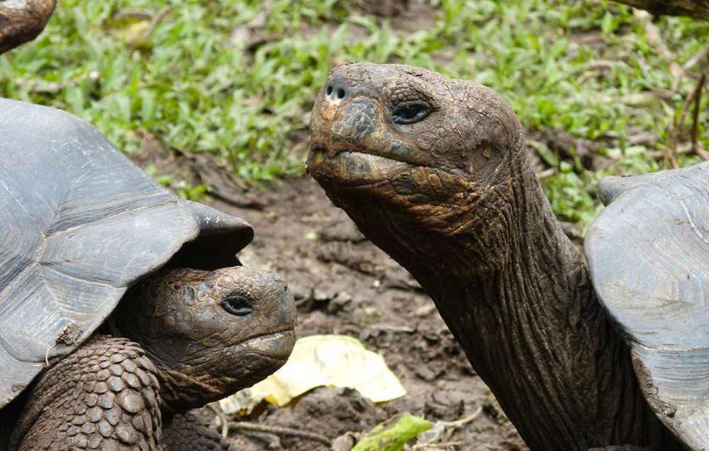 Danach stiegen wir in einen offenen Bus und fuhren ins Inselinnere. Dort unternahmen wir eine dreistündige Wanderung und besuchten unterwegs in einem Regenwald eine Station mit riesigen Galapagos-Schildkröten. Die Tiere können sich dort relativ frei bewegen und kommen regelmäßig zur Fütterung.
