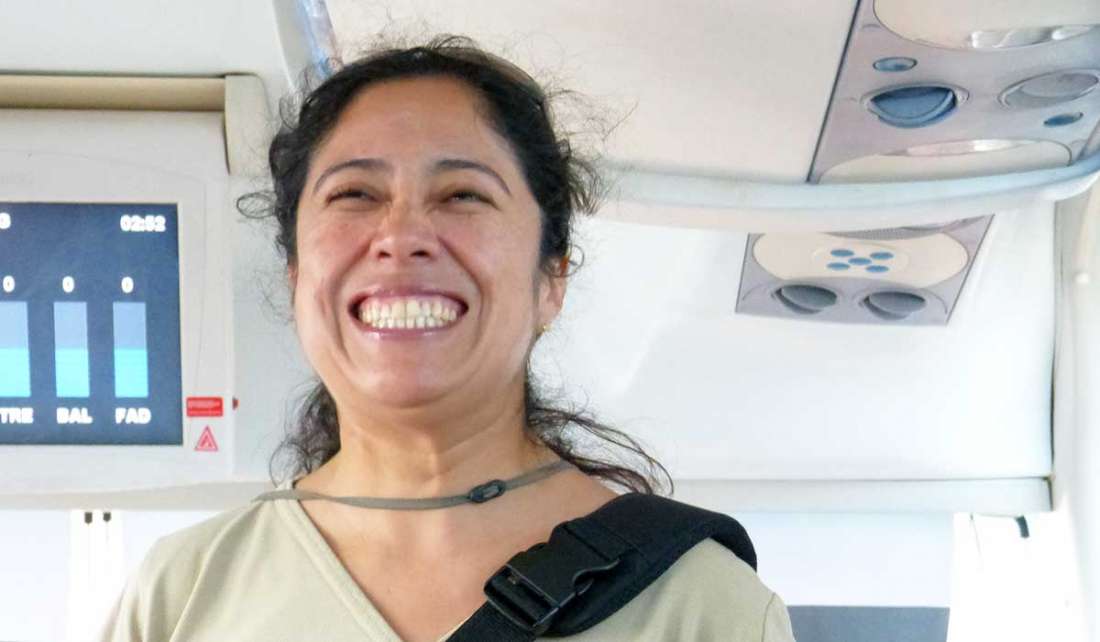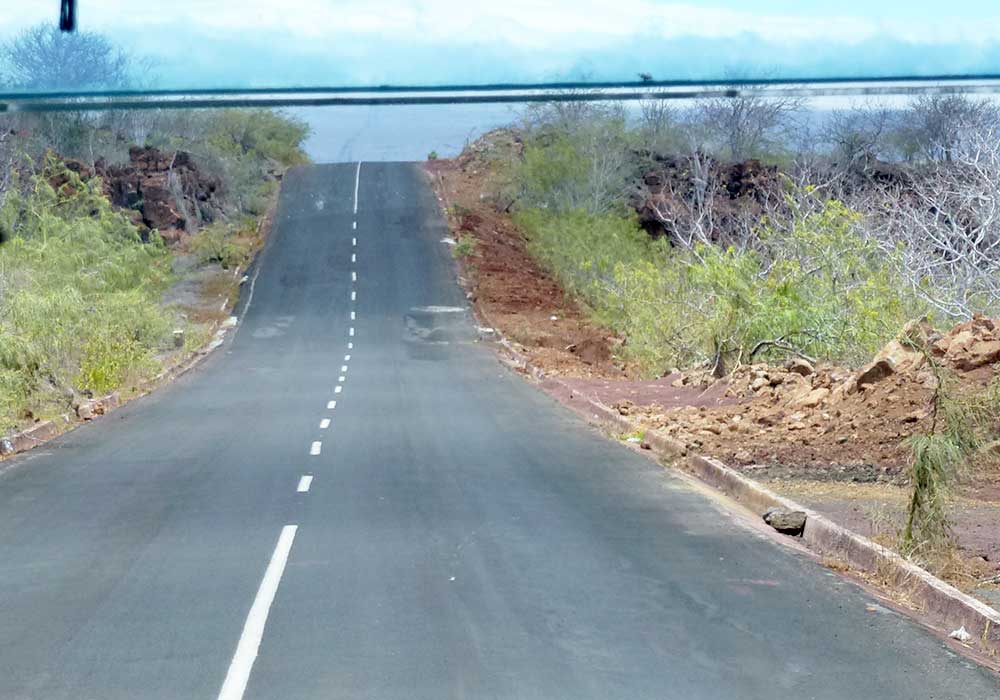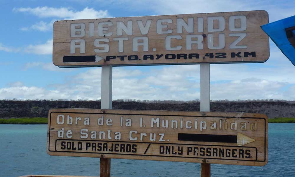 Mittags erreichten wir den Flughafen in Baltra auf Galapagos, bezahlten dort unsere Einreisesteuer und setzten danach mit dem Boot auf die Insel Santa Cruz über. Dort wartete schon der Bus, der uns vom Norden ganz in den Süden der Insel nach Puerto Ayora brachte. Zu Beginn der Fahrt stellte sich unsere sehr nette Reiseleiterin mit dem klangvollen Namen Vanessa Gallo Aguirre vor, die uns die nächsten Tage begleiten würde.