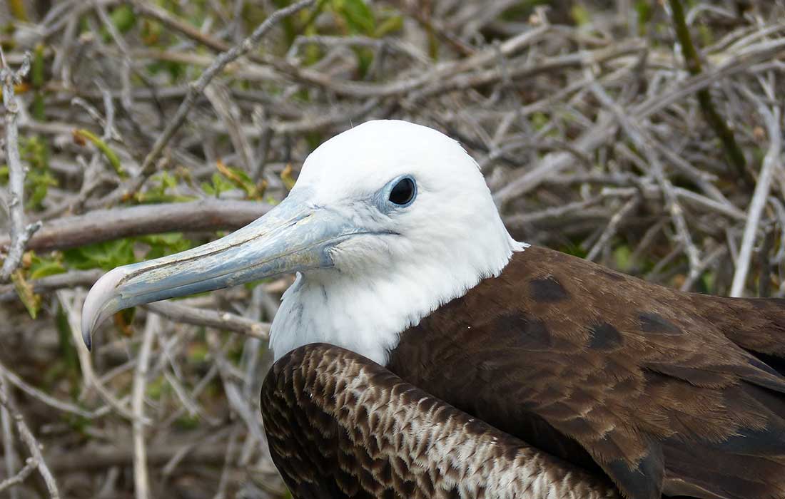 Sie sind sehr gute Flieger und in der Luft konnten wir sie gut an ihrem gegabelten Schwanz erkennen. Auf dem weiteren Weg, den unser örtlicher Führer mit uns ging und den wir zum Schutz der Tiere nicht verlassen durften, sahen wir sehr viele ihrer Nester. Fregattvögel können immerhin bis 26 Jahre alt werden.