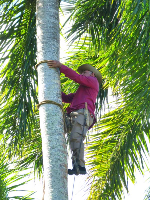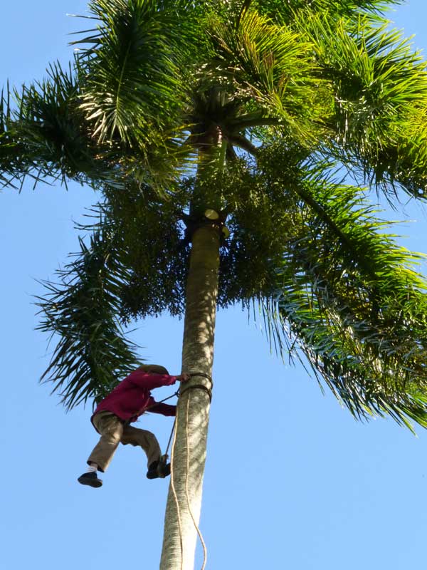 Unterwegs machten wir einen Mittags-Stopp auf einer Farm, wo wir etwas über das Leben der Farmer erfuhren und gezeigt bekamen, wie man mit lediglich zwei Seilen auf eine hohe Kokosnuss-Palme klettern kann.