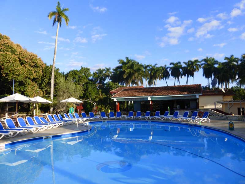 Gegen 17 Uhr erreichten wir das Hotel "La Granjita" ungefähr 5 km außerhalb von Santa Clara. Es befindet sich in einer sehr schönen Parkanlage mit Obstbäumen und Palmen abseits der Straße und man wohnt in wunderbar in die Natur eingepassten Bungalows. Sie waren geräumig, hatten aber kaum Platz zum Unterbringen von Sachen, was uns allerdings für die eine Nacht nicht sonderlich störte. Den restlichen Abend verbrachten wir im Hotel. Für den schönen Pool war es inzwischen zu dunkel und auch zu kühl geworden aber die Bar war auch okay.
