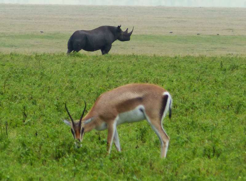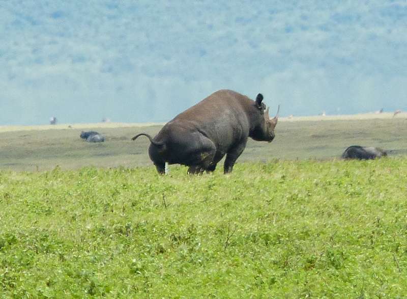 Auf der Rückfahrt zur Country Lodge machten wir eine Tour durch den NgoroNgoro-Krater, die ebenfalls sehr interessant war und uns endlich das lang ersehnte Spitzmaulnashorn sehen ließ (wenn auch in respektabler Entfernung):