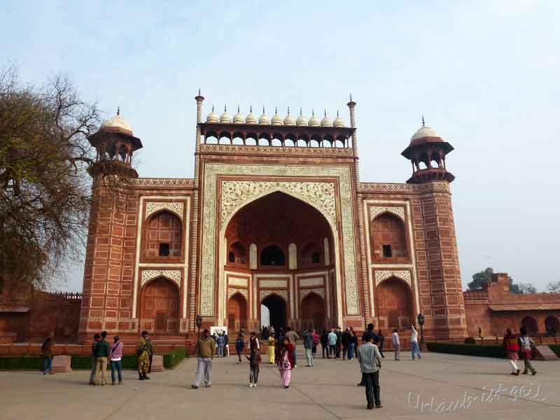 Das Mausoleum wurde von 1631 bis 1648 von Großmogul Shah Jahan zum Gedenken an seine 1631 verstorbene große Liebe Mumtaz Mahal erbauen.