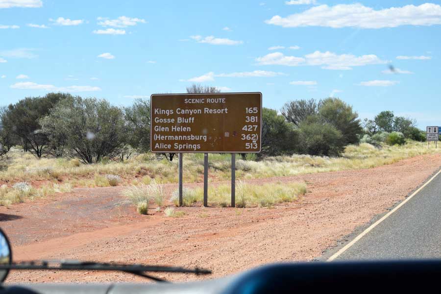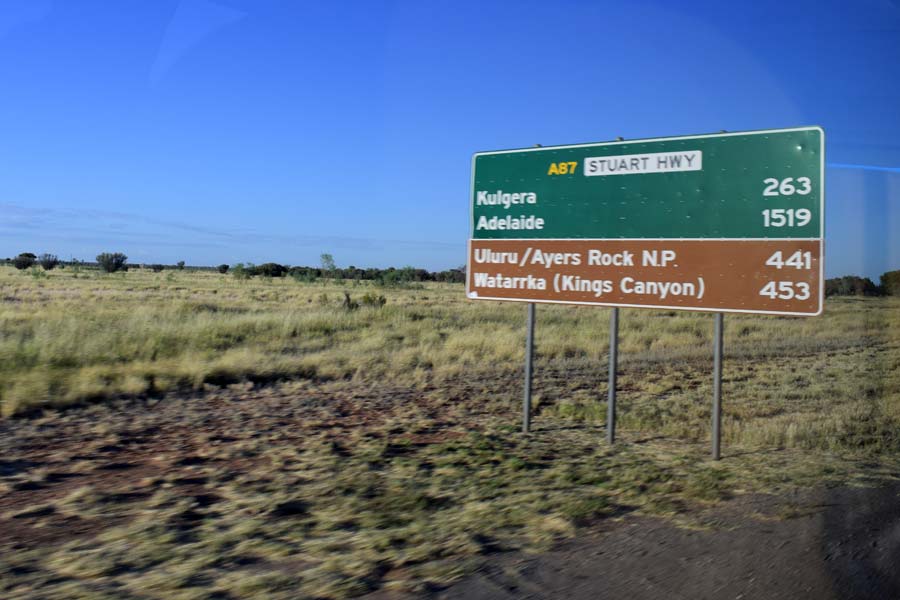 Dann begann die Rückfahrt nach Alice Springs, auf der wir wieder an den Road Houses hielten, um etwas Essen zu kaufen und Toiletten aufzusuchen. Am späten Nachmittag erreichten wir nach der langen Fahrt Alice Springs, wo wir an den jeweiligen Unterkünften abgesetzt wurden.