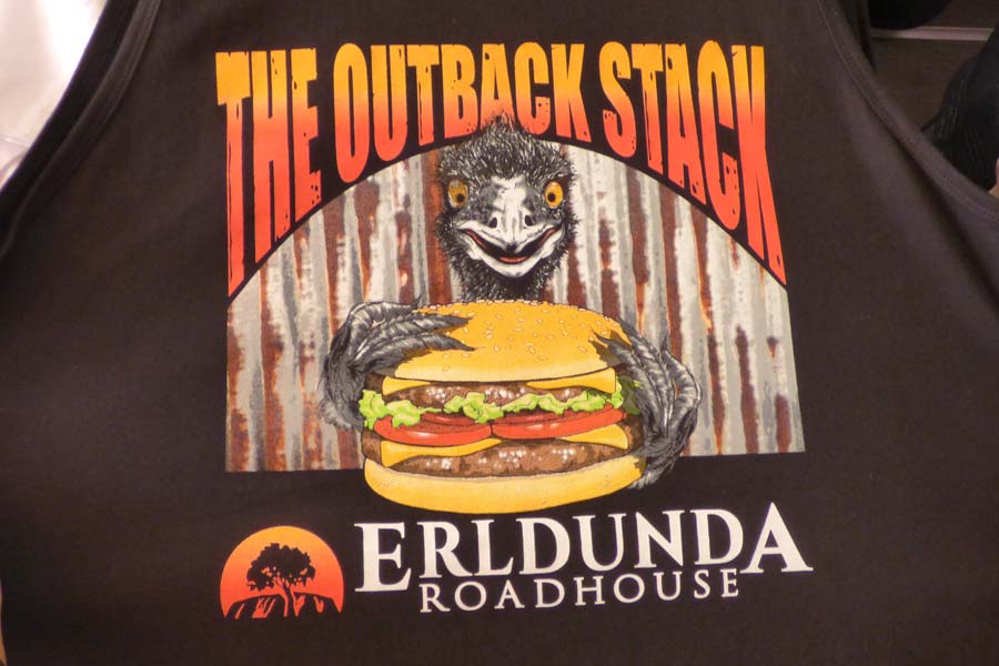 Dort mussten wir uns uns auch das Gepäck am Automaten selbst einchecken, was nach einigem Probieren auch klappte. Bevor unser Flugzeug 10.45 Uhr abhob, kauften wir uns noch einen Salat und ein Sandwich. Das Sandwich verputzte ich sofort und den Salat nahmen wir mit. Nach zwei Stunden landeten wir in Alice Springs. Als erstes kauften wir uns die bereits in Deutschland reservierten Tickets für den Shuttle der Firma "Wanderer" an einem Schalter in der Halle und stiegen in den Bus, der schon draußen bereit stand. Da wir noch auf einige Passagiere warten mussten verspeisten wir inzwischen unseren Salat. Der Bus fuhr uns danach direkt zum Motel "Alice Motor Inn", wo wir eincheckten und anschließend bei großer Hitze 15 Minuten bis in den Ort spazierten, um dort in einem Footcourt asiatisch zu essen.