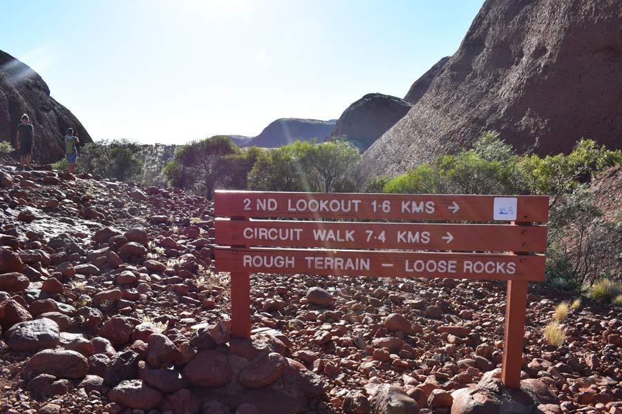 Weiter ging es zu den Kata-Tjuta, einer Gruppe von 36 Bergen, die auch Olgas genannt werden und 30 km vom Uluru entfernt sind. Dort war eine 5,5 Kilometer lange Wanderung durch das Valley of the Winds angesagt.