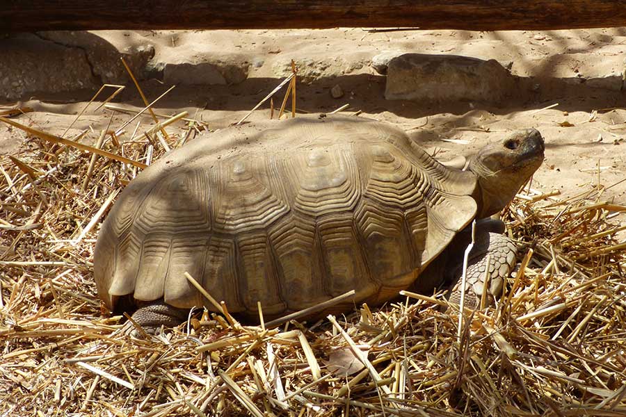 Gegen 11.30 Uhr erreichten wir kurz hinter dem Ort Sangalkam das Schildkrötendorf "Les Village des Tortues", unseren heutigen ersten Programmpunkt. Es ist ein Projekt zur Rettung der bedrohten Senegalesischen Landschildkröte. Die Schildkröten werden hier gezüchtet und später ausgewildert.