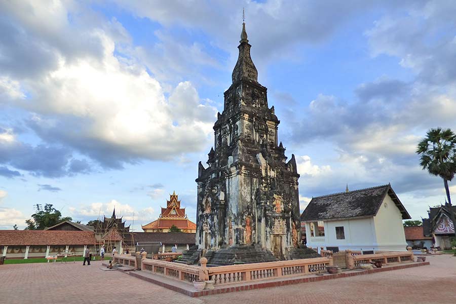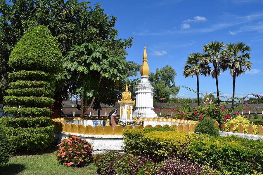 Sechs Kilometer südlich von Thakhek besuchten wir eine halbe Stunde später den fast 30 Meter hohen Stupa "That Sikhottabong". Er ist einer der wichtigsten Wallfahrtsorte in Laos, dessen Geschichte ins 10. Jahrhundert zurück reicht.